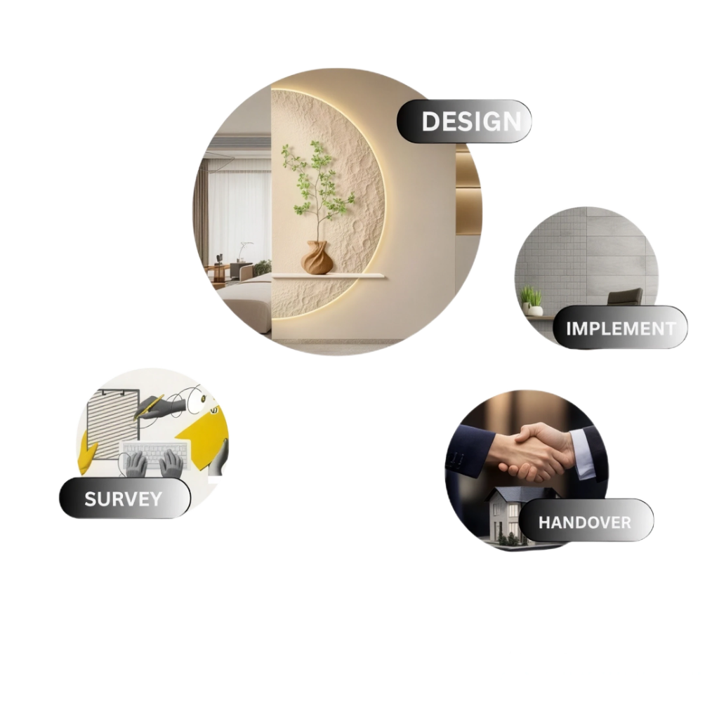 Deerwood Interior follows a thoughtful three-step process designed to deliver outstanding results for every client. As dedicated Interior Designers in Delhi NCR, our journey begins with an in-depth consultation to understand your vision and lifestyle, followed by a creative design phase where ideas take shape. Finally, we bring those concepts to life through expert execution and attention to detail, establishing us as your trusted Interior Decorators Near Me (Delhi NCR) for a smooth, personalized, and transformative experience for every project.
